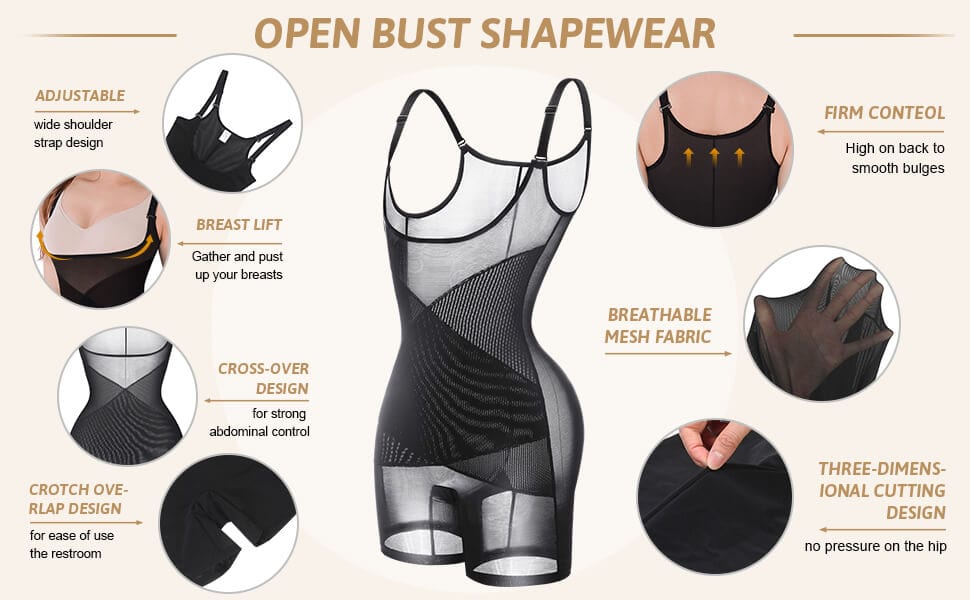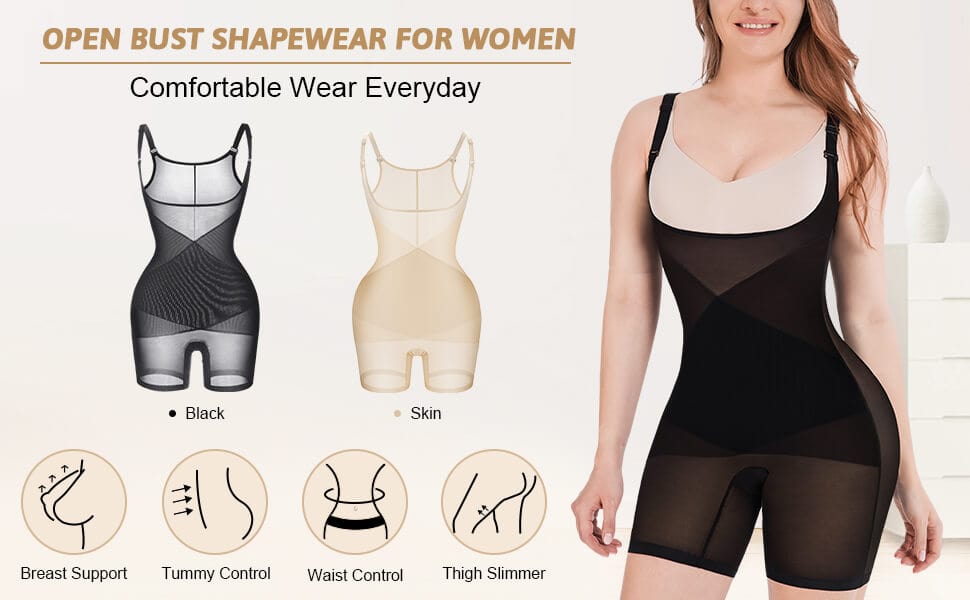 2. Open bust design to pair with your favorite bra for a truly custom fit and seamless under clothes;
