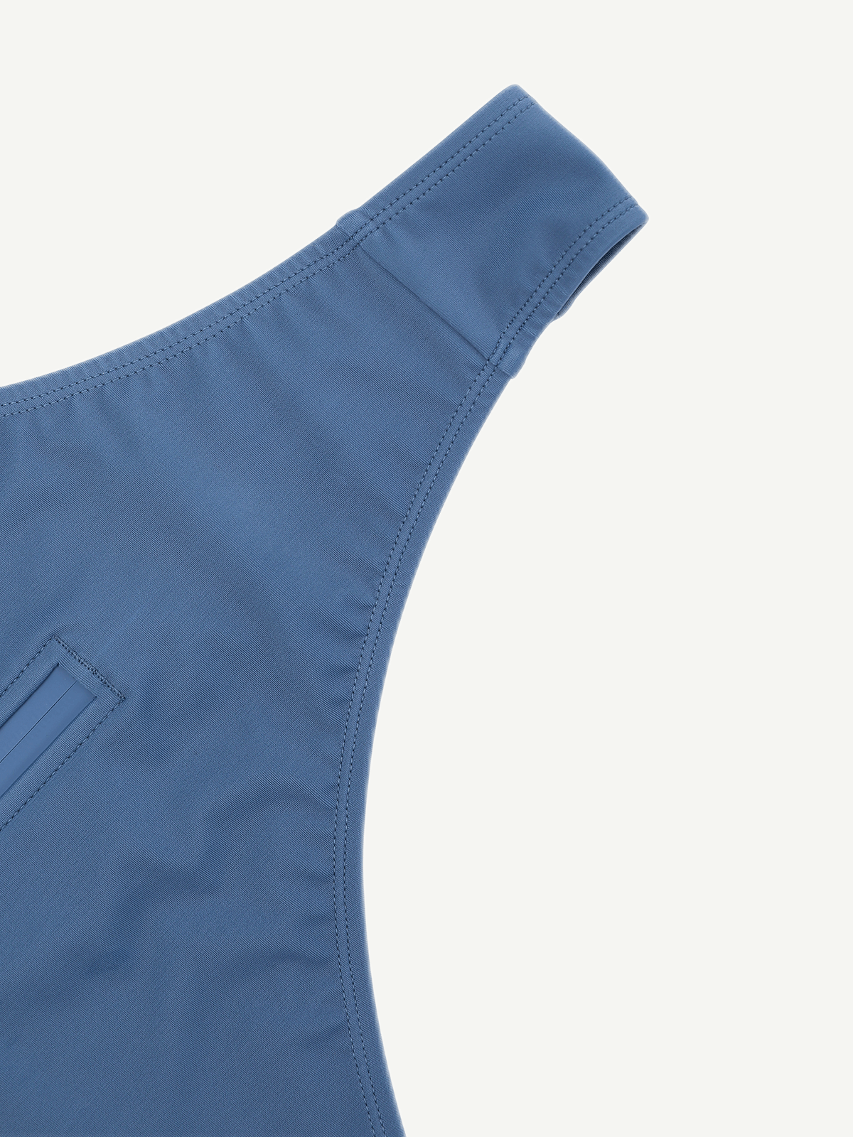 1. Waterproof zip front design makes an easy fit.2. Built-in slimming compression with the elastic mesh cutout in the tummy.